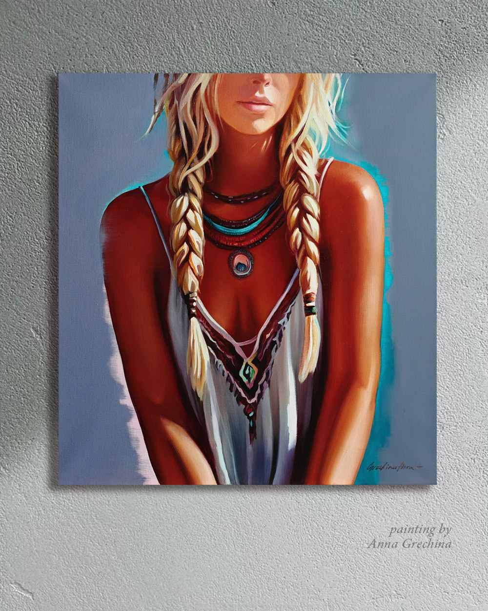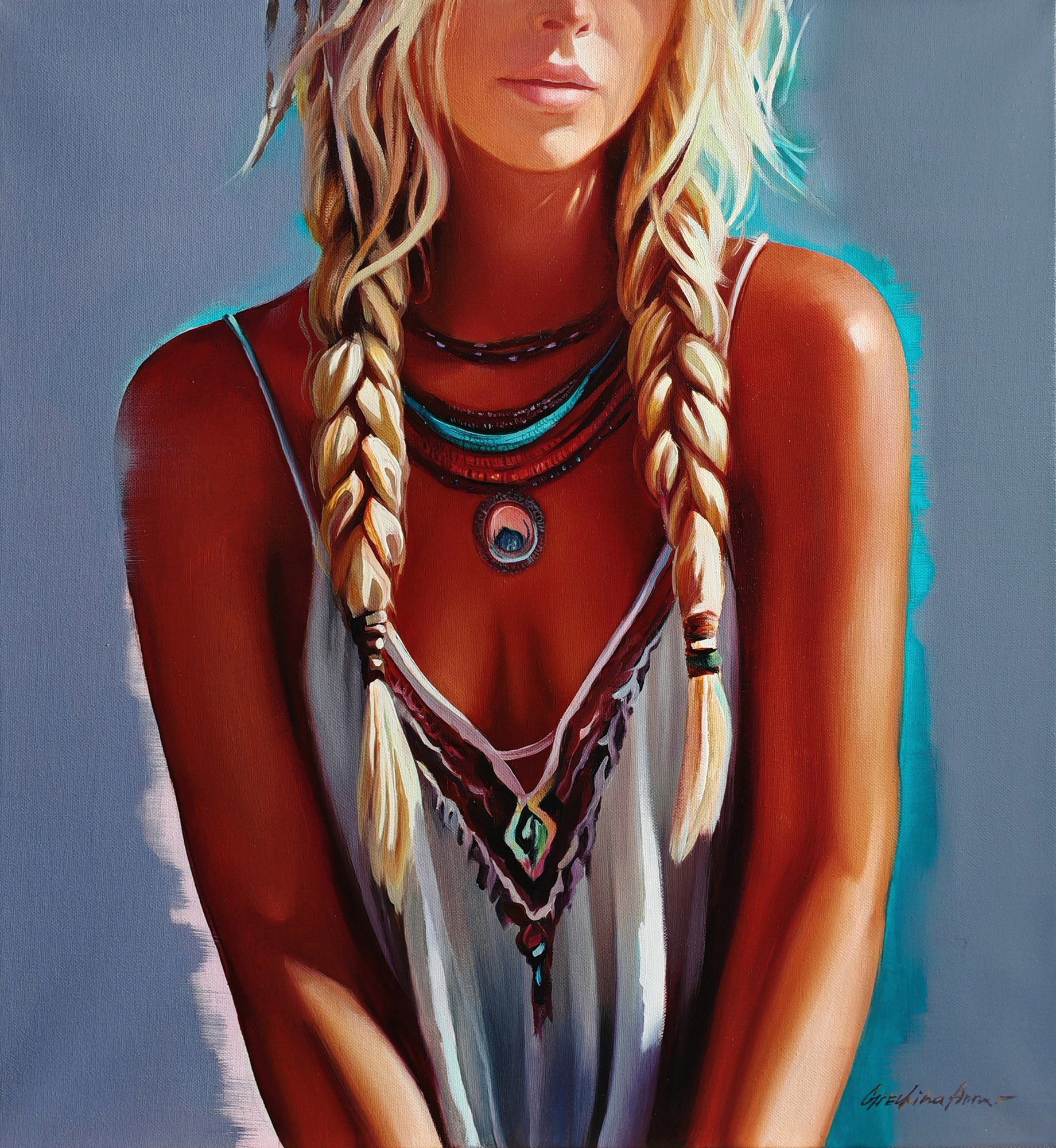 Картина с девушкой "Марья искусница". Художник Анна Гречина. Живопись, масло. 60х55см, 2025г.